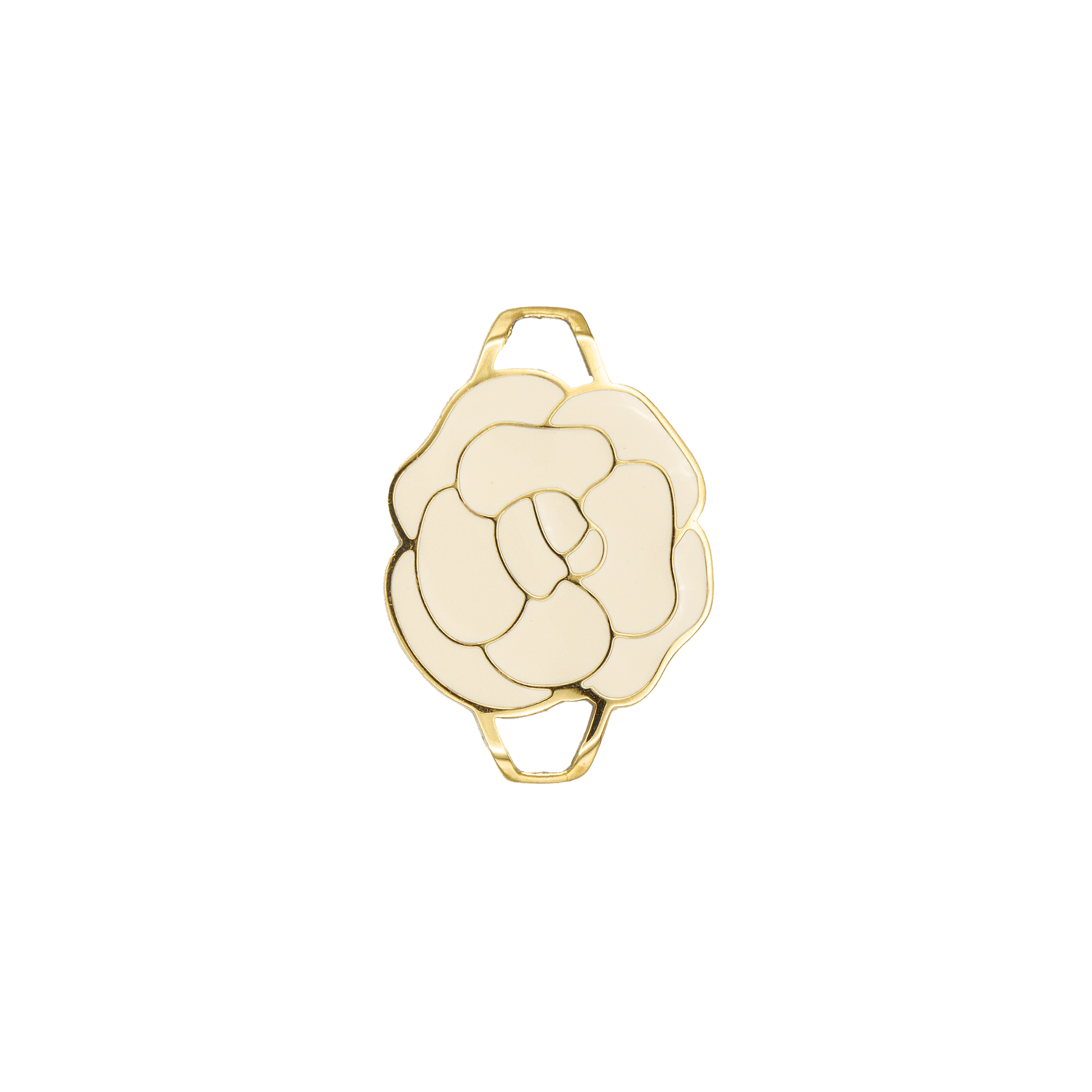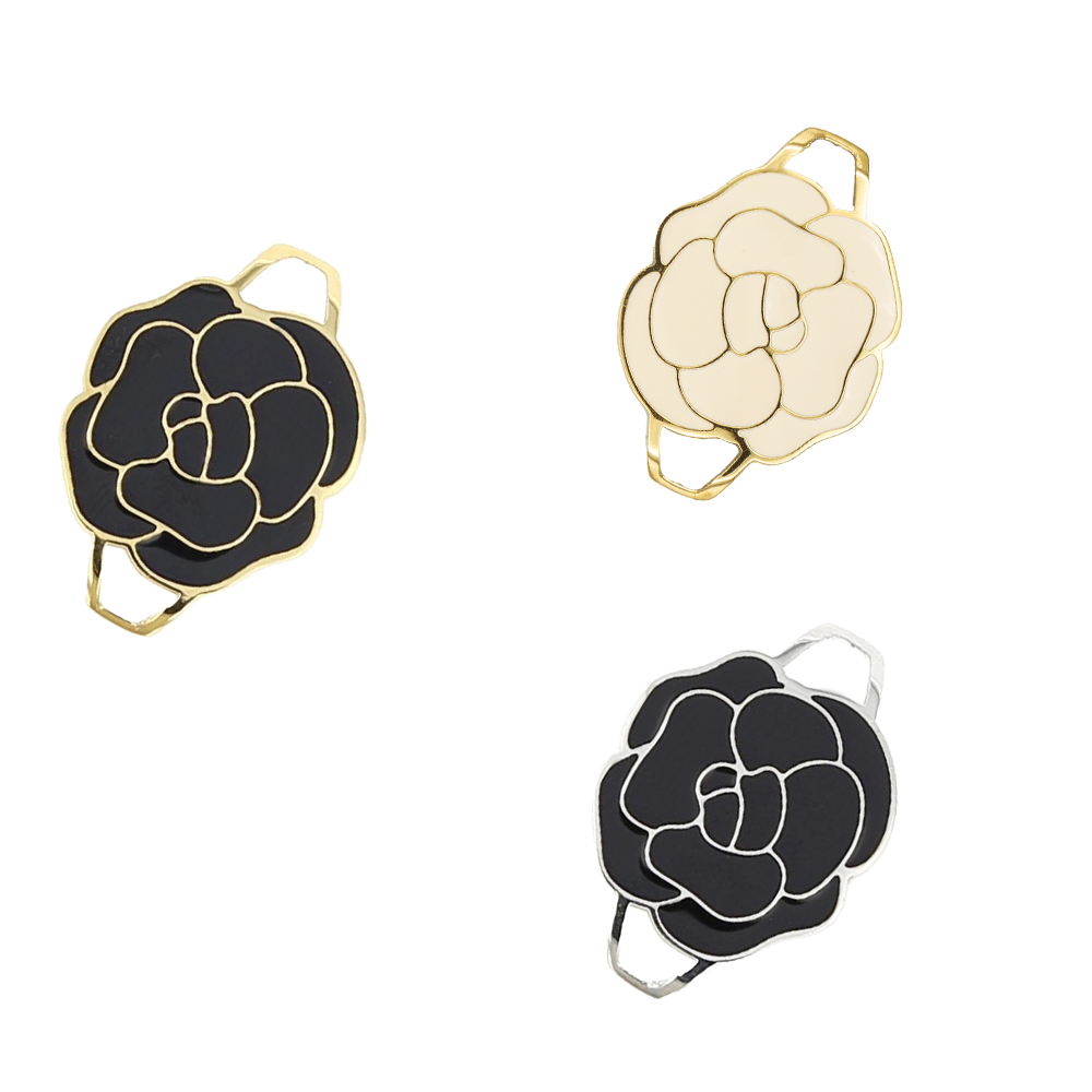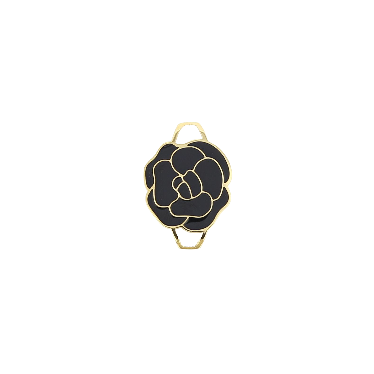 Une jolie fleur de Gardenia, décliné en deux coloris de métal en acier inoxydable couleur acier, avec un placage (IP) pour l'or. Il est ensuite émaillé en noir, ou crème. Il est délicat, et original. Vous le choisissez avec nos 24 couleurs de cordons à noeuds coulissants, ou sa chaîne bijou très chic.