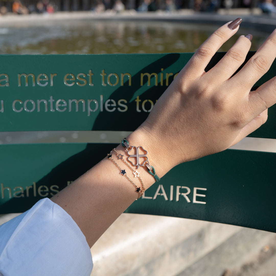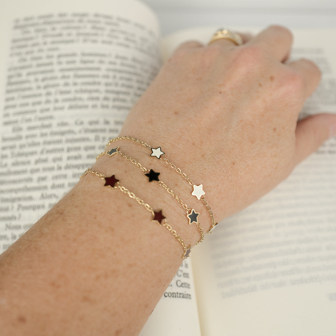 Un bracelet orné d'étoiles, délicates. A porter tous les jours, sans jamais s'en séparer pour orner délicatement le poignet, mais aussi rêver un peu et s'échapper.