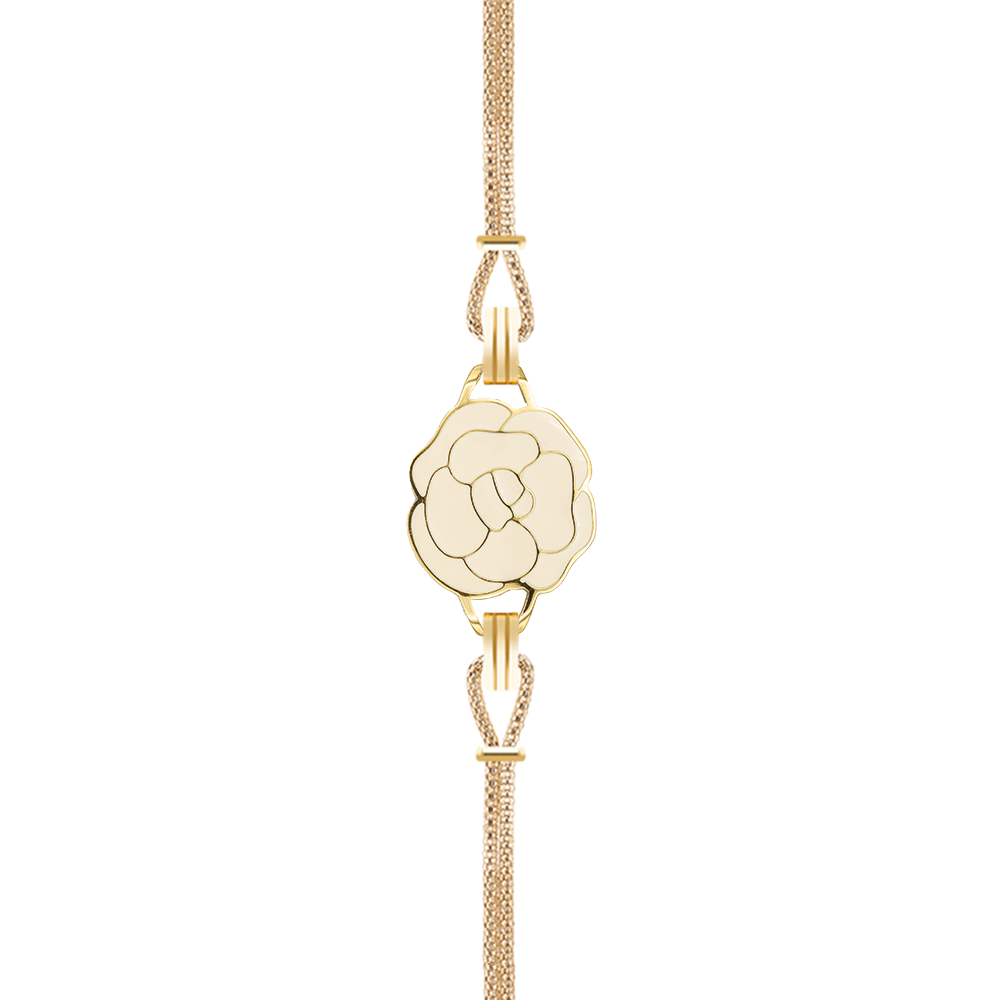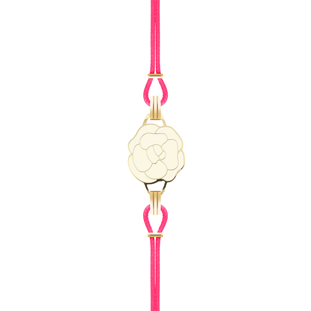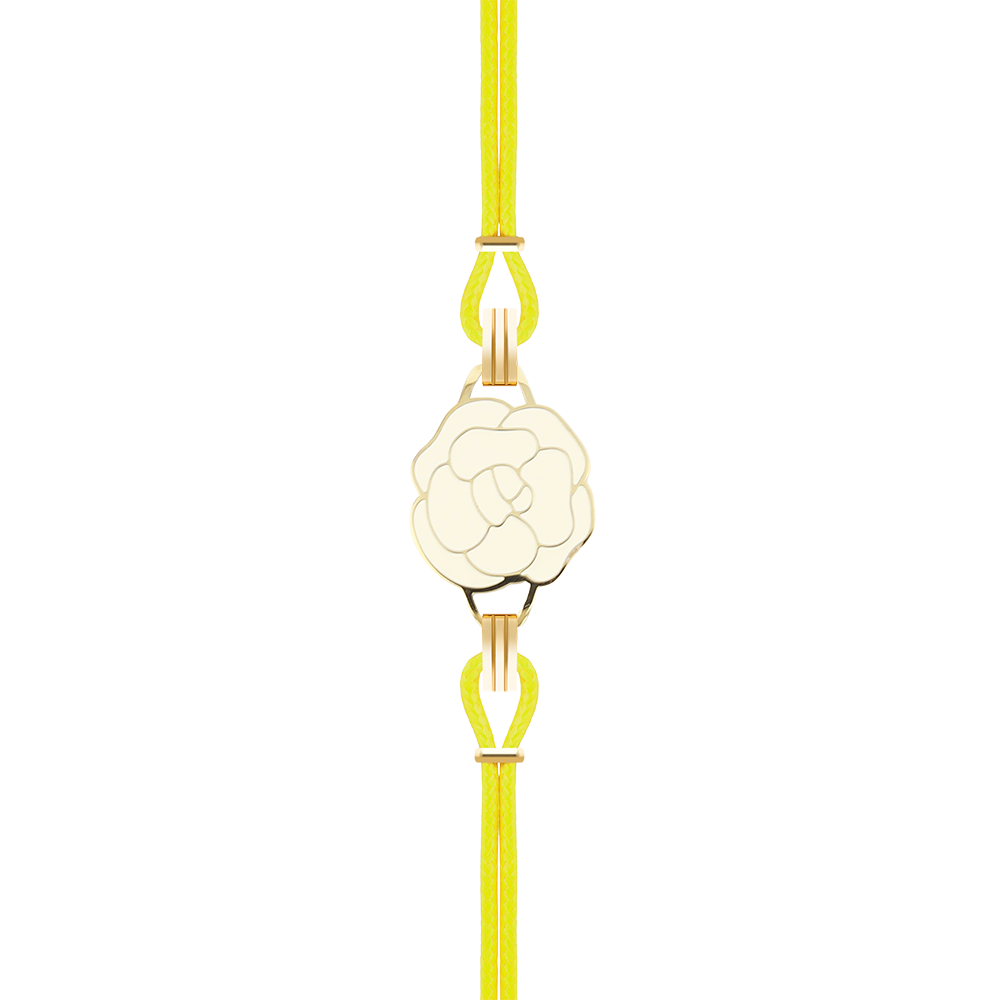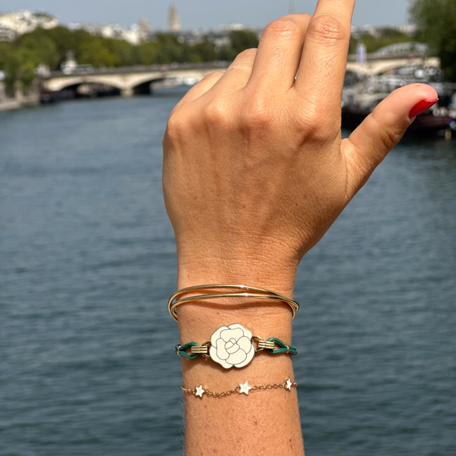 Une fleur de gardenia à votre poignet, qui se porte avec une chaine bijou intemporelle et chic, et en un clic vous passez à un look pop et coloré selon vos humeurs ou votre tenue avec nos 24 couleurs de cordons possibles. Vous n'avez plus qu'à choisir !
